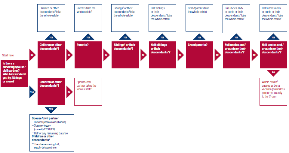The following intestacy chart will show you what happens to money/assets if you are married/not married: